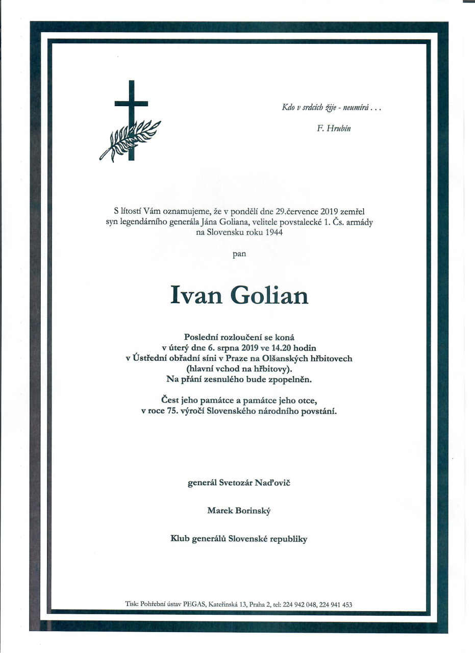 120. výročie narodenia genplk. in memoriam Jána Goliana