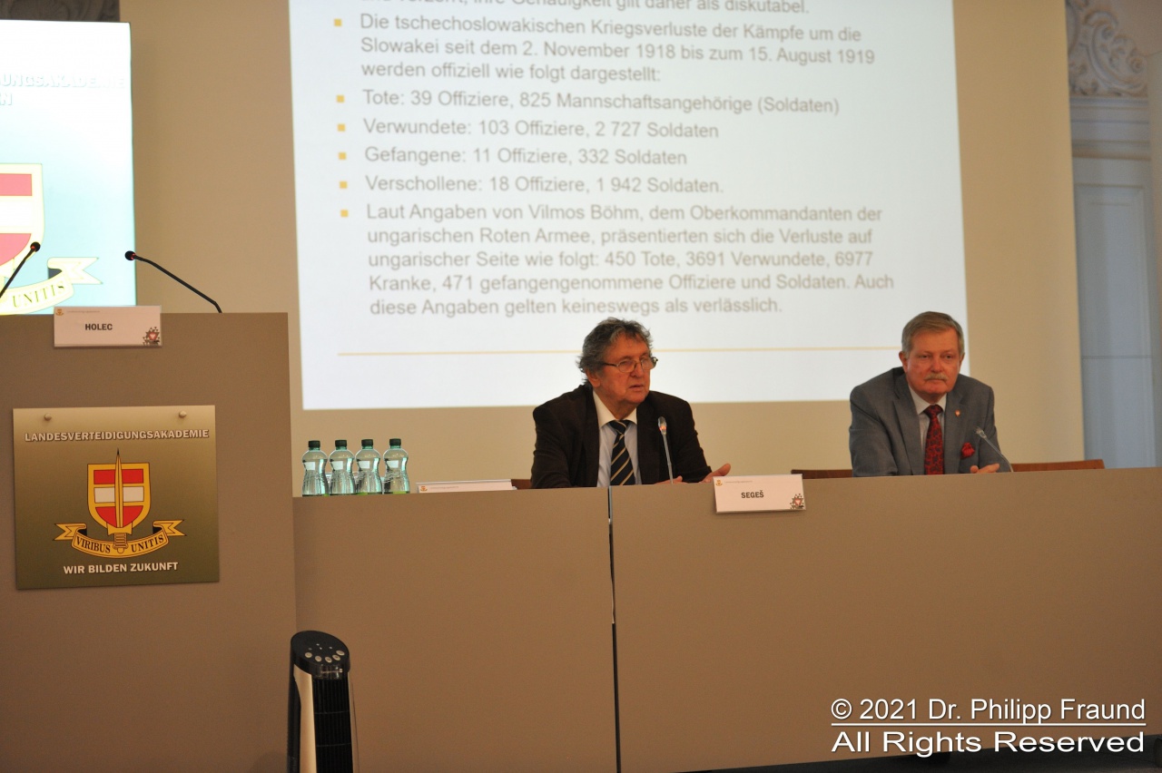 Vojenský historický ústav na ňom reprezentoval doc. PhDr. Vladimír Segeš, PhD., ktorý predniesol referát Der Kleine Krieg nach dem Großen Krieg: Die Kämpfe zwischen tschechoslowakischen und ungarischen Armeen in der Slowakei 1918 –1919 (Malá vojna po Veľkej vojne: Boje medzi československou a maďarskou armádou na Slovensku v rokoch 1918 – 1919). Jeho power-pointové vystúpenie s množstvom súdobých fotografií, dokumentov a máp sa stretlo so záujmom prítomného publika, ako aj diskutujúcich, ktorí okrem iného poukázali na skutočnosť, že v okolitých štátoch sa o týchto udalostiach doposiaľ vie pomerne veľmi málo. Dôvodom je najmä absencia prác slovenskej historiografie v cudzích jazykoch.
