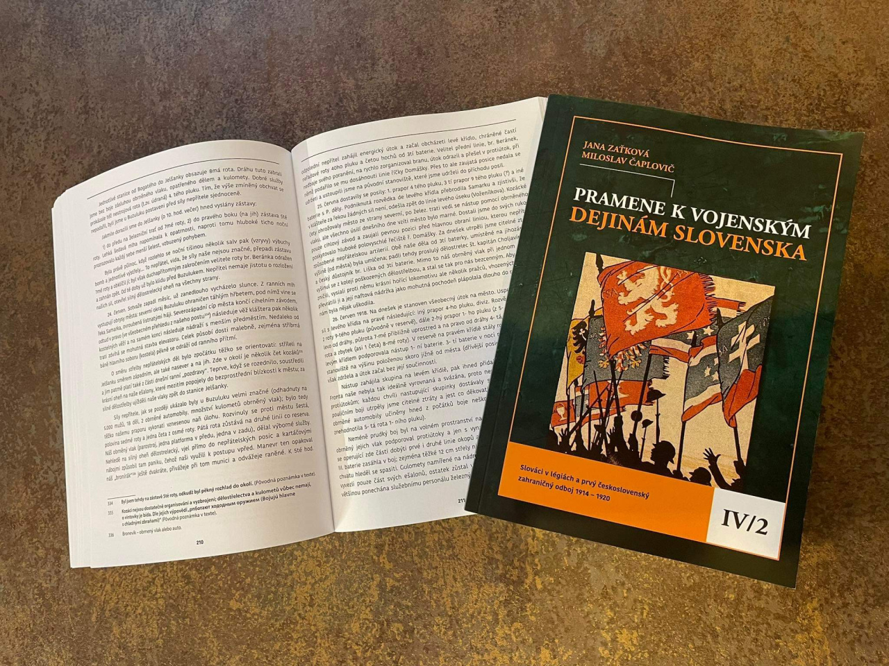 Styčným bodom a ústredným motívom nového zväzku IV/2, s podtitulom Slováci v légiách a prvý československý zahraničný odboj 1914 – 1920, je účasť našich predkov v hnutí, ktoré viedlo k vytvoreniu samostatného štátu Čechov a Slovákov na troskách zanikajúcej habsburskej monarchie. Editori, plk. Mgr. Miloslav Čaplovič, PhD. a Mgr. Jana Zaťková, PhD., do publikácie zaradili viac ako stodvadsať zaujímavých dokumentov mapujúcich úlohu Slovákov pri nábore dobrovoľníkov, výstavbu čs. légií, ich každodenný život či návrat do vlasti. Z množstva legionárov slovenského pôvodu sa v dokumentoch vyskytujú mená známych dejateľov ako boli napríklad Jozef Gregor Tajovský, Martin Oríšek, Rudolf Viest, Vladimír Daxner, či Rudolf Gábriš.
