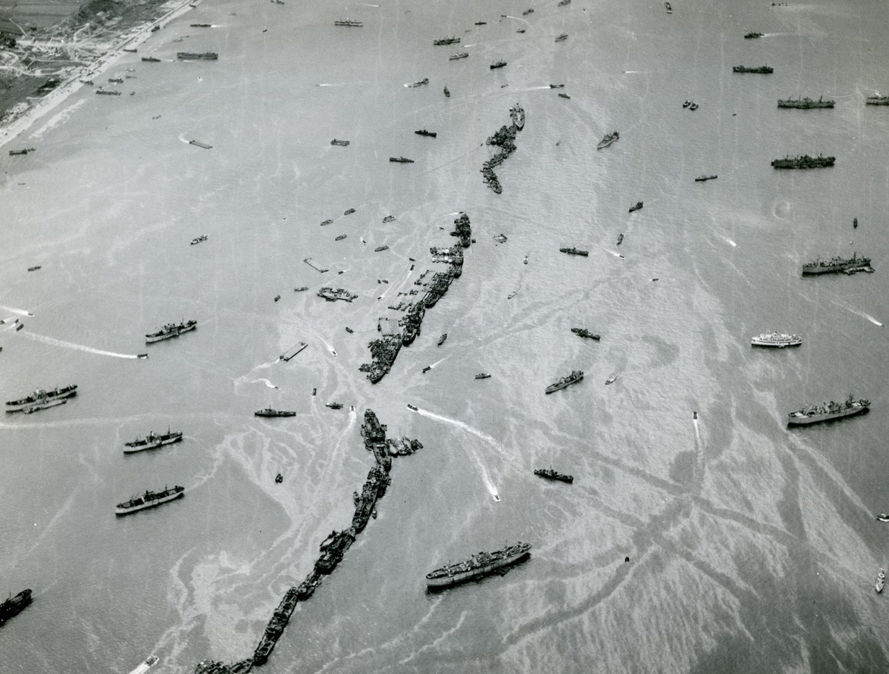 „Keď sa naše perute vrátili k pobrežiu, objavil sa pred nimi úchvatný obraz. Od anglického pobrežia k brehom Normandie bol doslova napätý most z lodí blížiacich sa k pevnine, bojových lodí, z ktorých vyšľahovali plamienky diel, zasypávali nemecké batérie tonami streliva a invázne člny pristávajúce na piesčinách, vrhali nové a nové tisíce mužstva na úzky pruh pobrežia.“