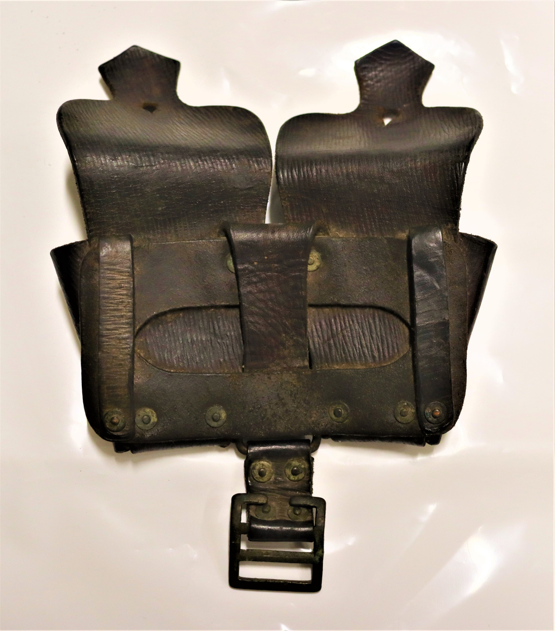 Zbierkový predmet, podľa múzejnej dokumentácie súčasť výstroja príslušníka 1. čs. armádneho zboru v ZSSR počas druhej svetovej vojny, bol nadobudnutý do zbierok niekdajšieho Dukelského múzea vo Svidníku v roku 1979. Tieto britské kožené sumky vzor 1939, pôvodne určené na jeden nábojový pásik s piatimi nábojmi typu Enfield.303-inch (British), boli zavedené v roku 1939 do vojenského výstroja z dôvodu obmedzených zásob bavlnenej textílie. Nový vzor vychádzal z britskej sumky vzor 37, ktorý sa naďalej používal, a nový vzor 39 bol zavedený predovšetkým pre domáce jednotky. Medzi zahraničnými jednotkami, ktoré používali britskú výstroj, bol aj 1. čs. samostatný poľný prápor v ZSSR, ktorý vznikol vo februári 1942 v Buzuluku. Za optimálnych okolností sa sumky používali v páre, ale stávalo sa, že aj jednotlivo. Prax však postupne ukázala, že na východnom fronte bolo používanie týchto sumiek nepraktické, keďže neboli schopné pojať ani jeden pásik s piatimi nábojmi typu 7,62x54 mm R, resp. tento pásik sa dovnútra vošiel len za cenu toho, že sa sumka nedala zatvoriť. A tak boli z používania postupne vyradené.