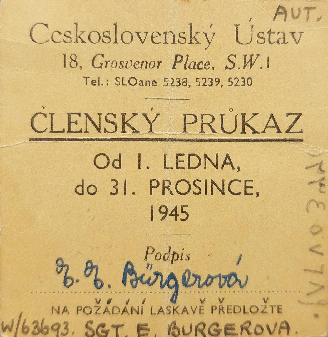 Členský preukaz Československého ústavu v Londýne