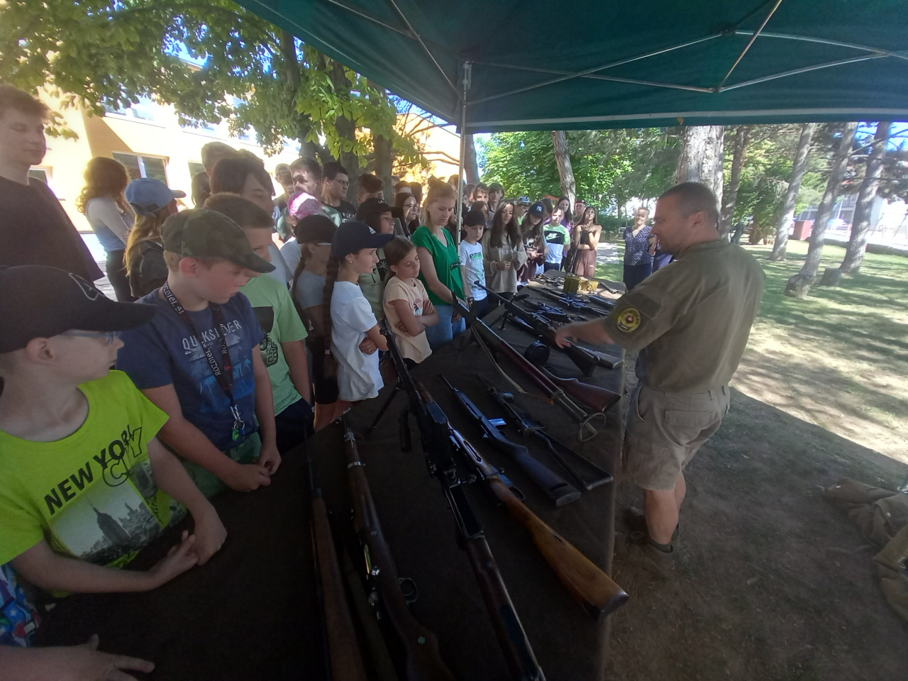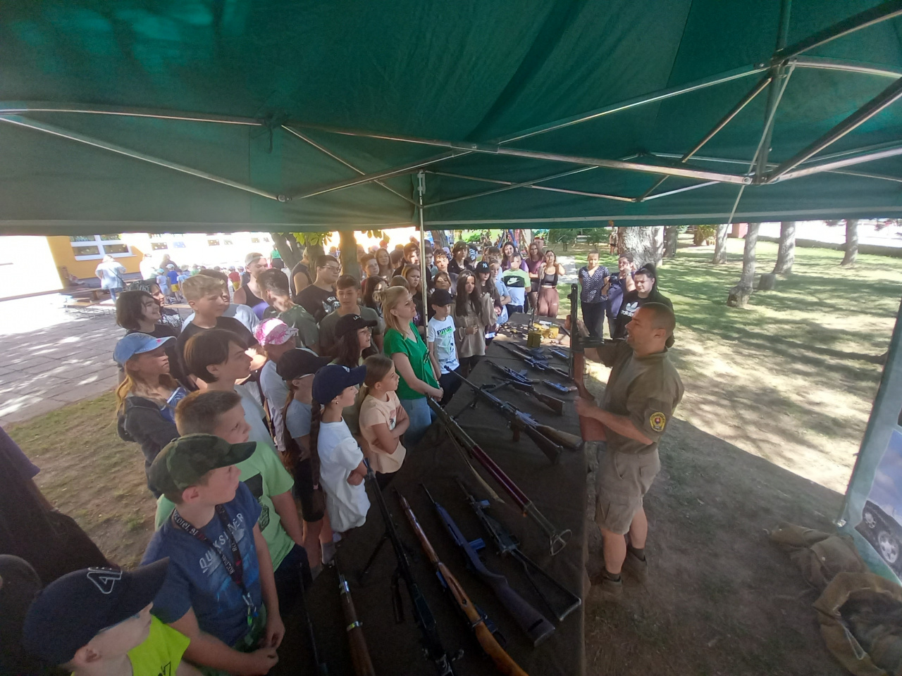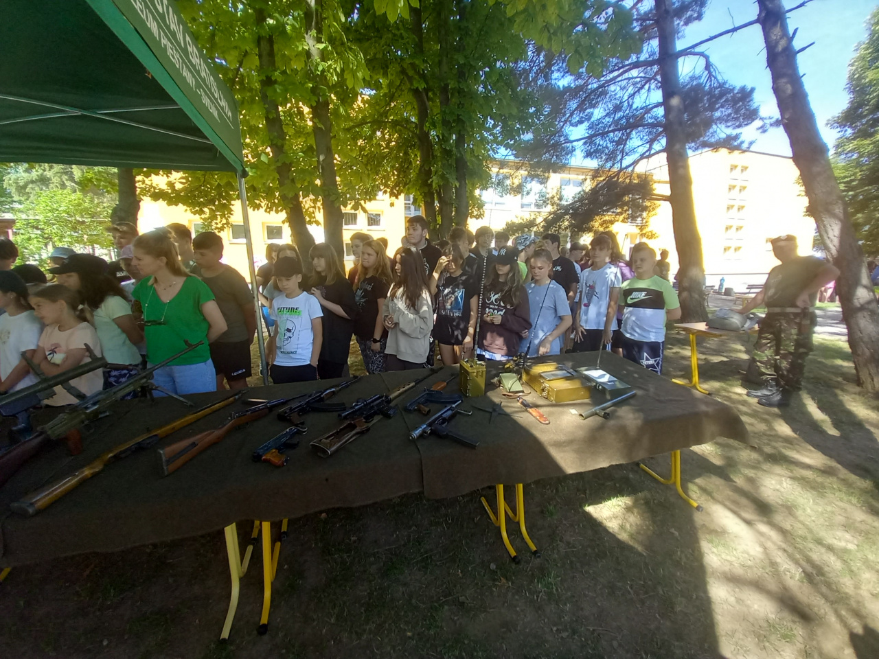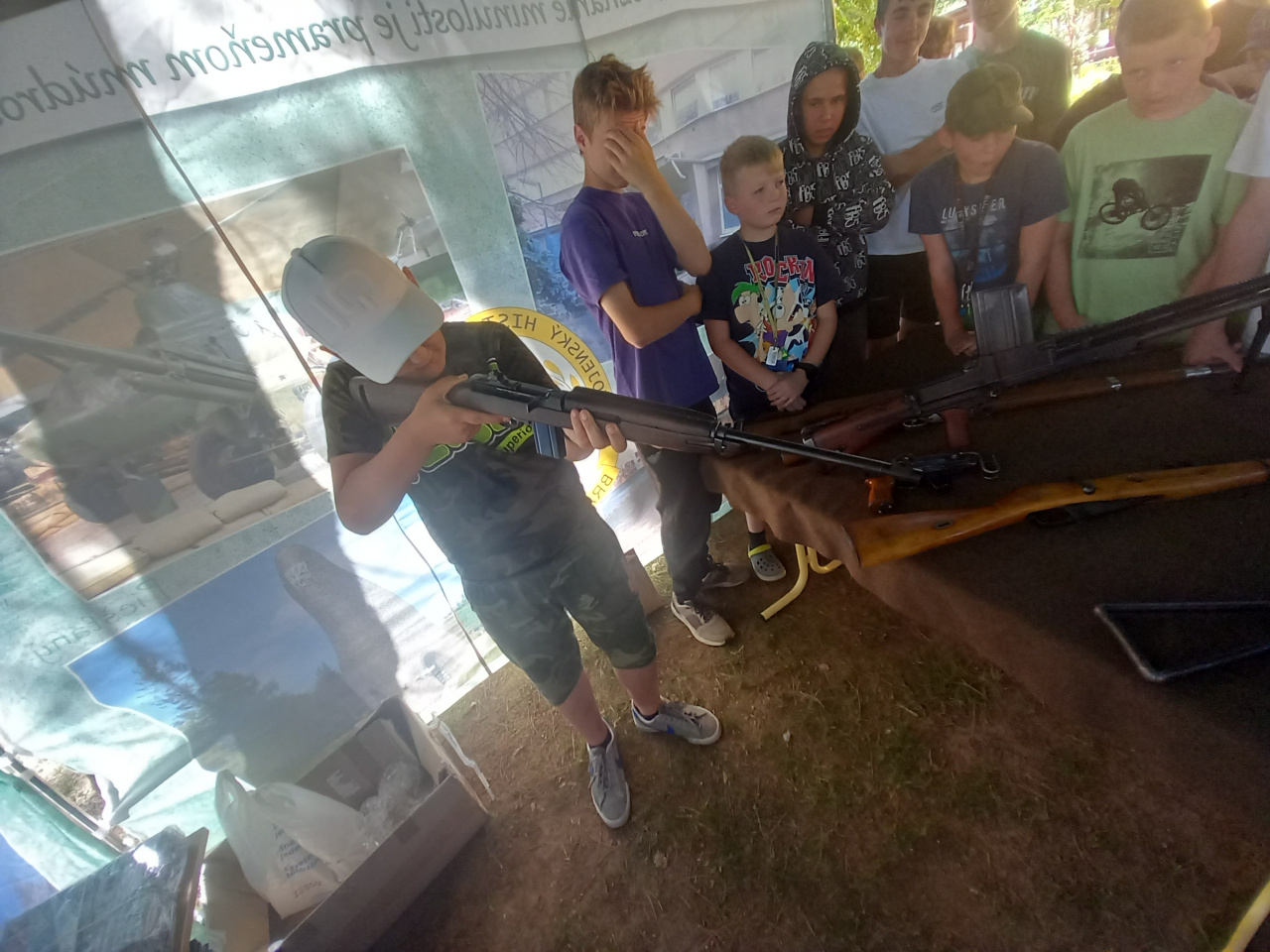 Príslušníci Čestnej stráže Ozbrojených síl SR v rámci zaujímavého programu predviedli vo vonkajších priestoroch základnej školy slávnostný pochod a mnoho atraktívnych cvikov so zbraňou. Ich druhou ukážkou bolo zaistenie ozbrojeného páchateľa s použitím sebaobrany a celej rady bojových prvkov, ktoré deti s nefalšovaným záujmom sledovali. Jedným z účastníkov akcie bol aj Vojenský historický ústav, ktorý zastupovali naši vojenskí múzejníci z pracoviska v Piešťanoch. Úlohou našich vojenských múzejníkov bolo priblížiť deťom vojenskú výzbroj, výstroj a techniku, ktorú používali armády na území Slovenska od vzniku Československej republiky až po súčasnosť. Medzi iným im ukázali aj historickú spojovaciu techniku výsadkových a prieskumných jednotiek. Deti sa oboznámili aj s „mínohľadačkou“, ktorá patrila medzi technické prostriedky ženijného vojska. Malí záujemcovia o vojenskú minulosť Slovenska dostali možnosť „poťažkať“ si zbierkové predmety – delaborované ručné palné zbrane. No atrakciou prezentácie sa stalo pozorovanie priestoru pomocou periskopu pre prieskumníkov. Žiaci dostávali počas návštevy nášho prezentačného stánku rôzne otázky z vojenských dejín Slovenska a za správne odpovede boli odmenení prezentačnými materiálmi z dielne Ministerstva obrany SR a Vojenského historického ústavu. Múzejníci pri práci s miestnymi deťmi zúročili znalosti, ktoré získali prostredníctvom mnohopočetných návštev ich vrstovníkov v stálych expozíciách piešťanského Vojenského historického múzea. Na podujatí bol priblížený aj život príslušníkov Ozbrojených síl SR pôsobiacich na zahraničných misiách. Prispela k tomu aj prezentácia knihy pod názvom Plukovník OSN, ktorú deťom predstavil jej autor pplk. v. v. Dr. Bernard Roštecký, pričom niekoľko výtlačkov knihy daroval miestnej škole. Pri príležitosti tohto podujatia venoval minister obrany Jaroslav Naď škole rozsiahlu publikáciu Vojenské dejiny Slovenska a Slovákov, ktorú spracoval kolektív autorov Vojenského historického ústavu. Program obohatili aj príslušníci Klubu vojenských výsadkárov Banská Bystrica s praktickou ukážkou padáka, a podelením sa s mnohými príbehmi zo života výsadkárov. Po moderátorovom ukončení podujatia nasledovalo poďakovanie riaditeľky základnej školy i starostu obce za zaujímavý program, ktorý zvýšil historické povedomie nielen žiakov a ich rodičov, ale aj zamestnancov školy.