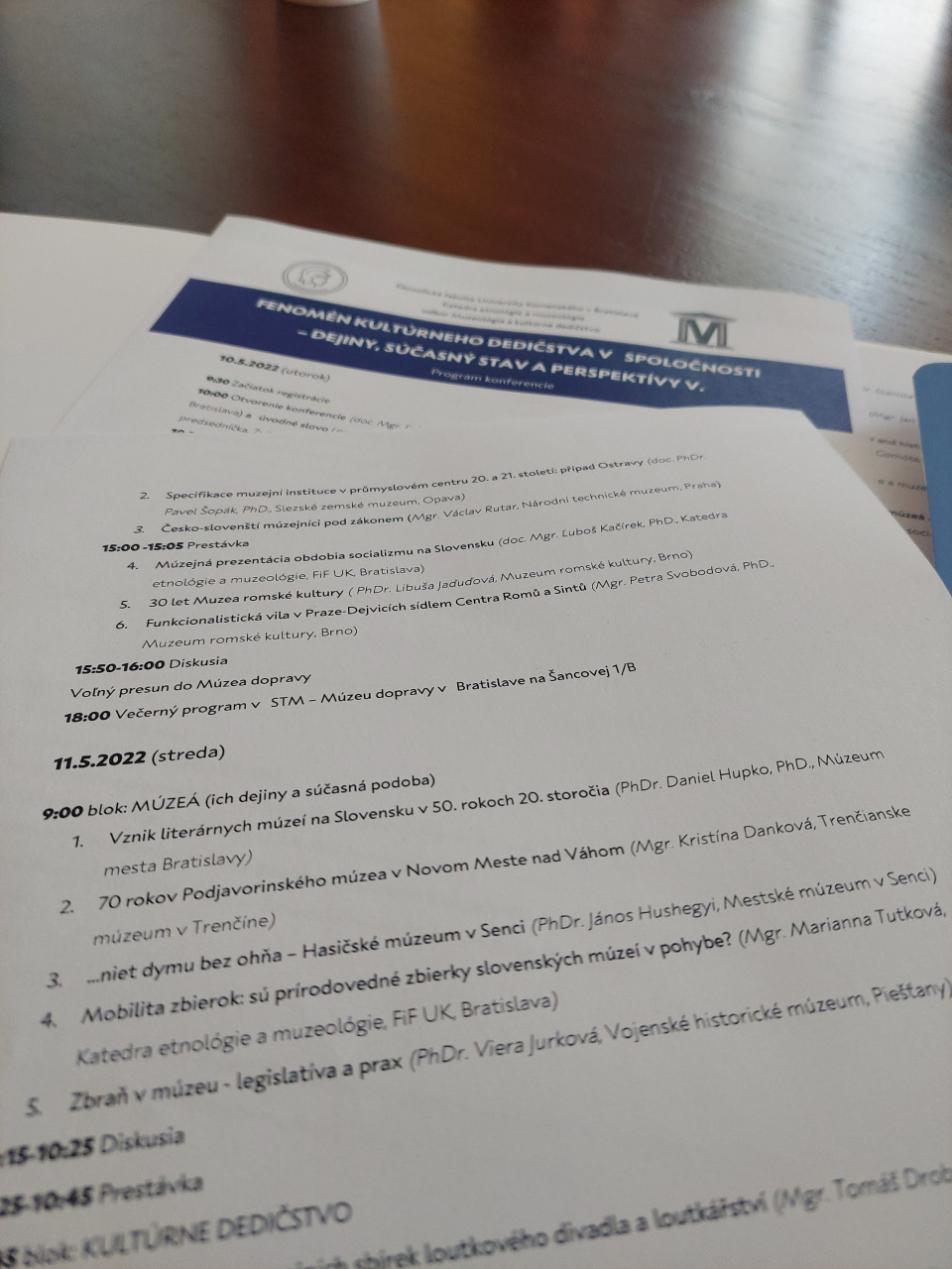 Druhý konferenčný deň pozostával z dvoch blokov venovaných témam Múzeá – ich dejiny a súčasná podoba a Kultúrne dedičstvo. V rámci prvého vystúpila so svojím príspevkom Zbraň v múzeu – legislatíva a prax aj kurátorka VHÚ – Vojenského historického múzea v Piešťanoch, PhDr. Viera Jurková a múzejníkom priblížila minulý i súčasný legislatívny rámec nadobúdania zbraní do múzejných zbierok, v krátkosti načrtla súčasné možnosti akvizícií zbraní najmä v súvislosti s novelou zákona o zbraniach a strelive, ktorá vstúpila do platnosti vo februári 2022 a tiež predstavila základné odporúčania, ktorými by sa mali múzejníci riadiť pri správe zbraní v múzeách v rámci vykonávania múzejných odborných činností.