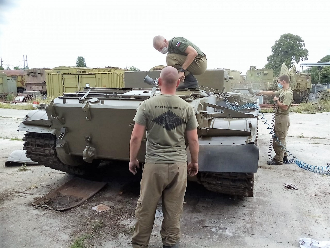 - komplexná oprava náterov brán a hangáru určených na garážovanie služobných vozidiel a skladovanie materiálu VHÚ;