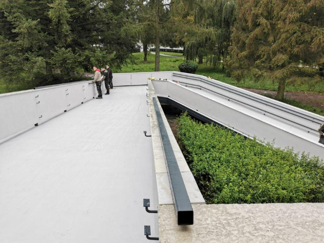 - modernizácia brán, oprava striech a vybudovanie zabezpečovacieho a kamerového systému garáží, určených na parkovanie služobných vozidiel a techniky určenej na údržbu exteriéru;