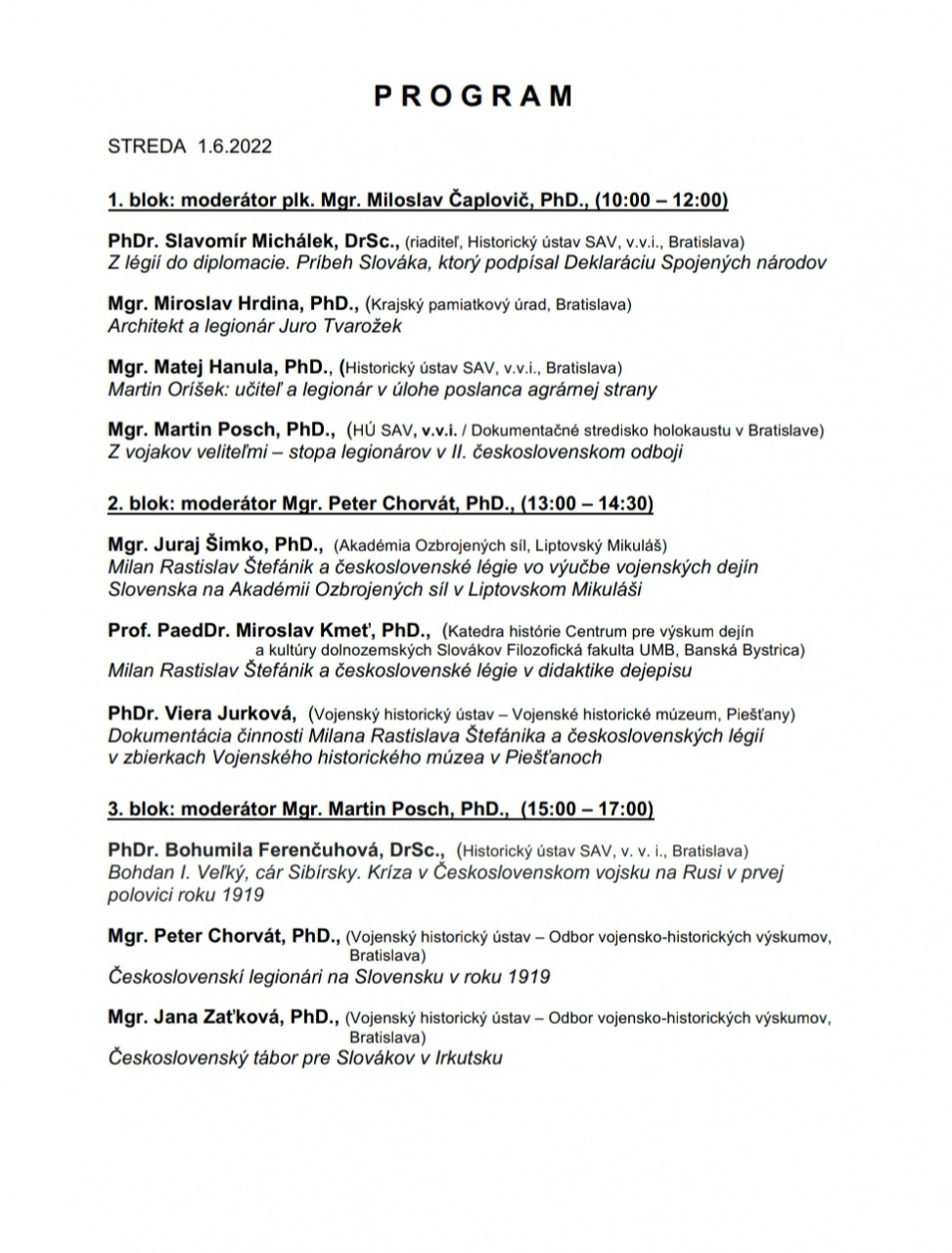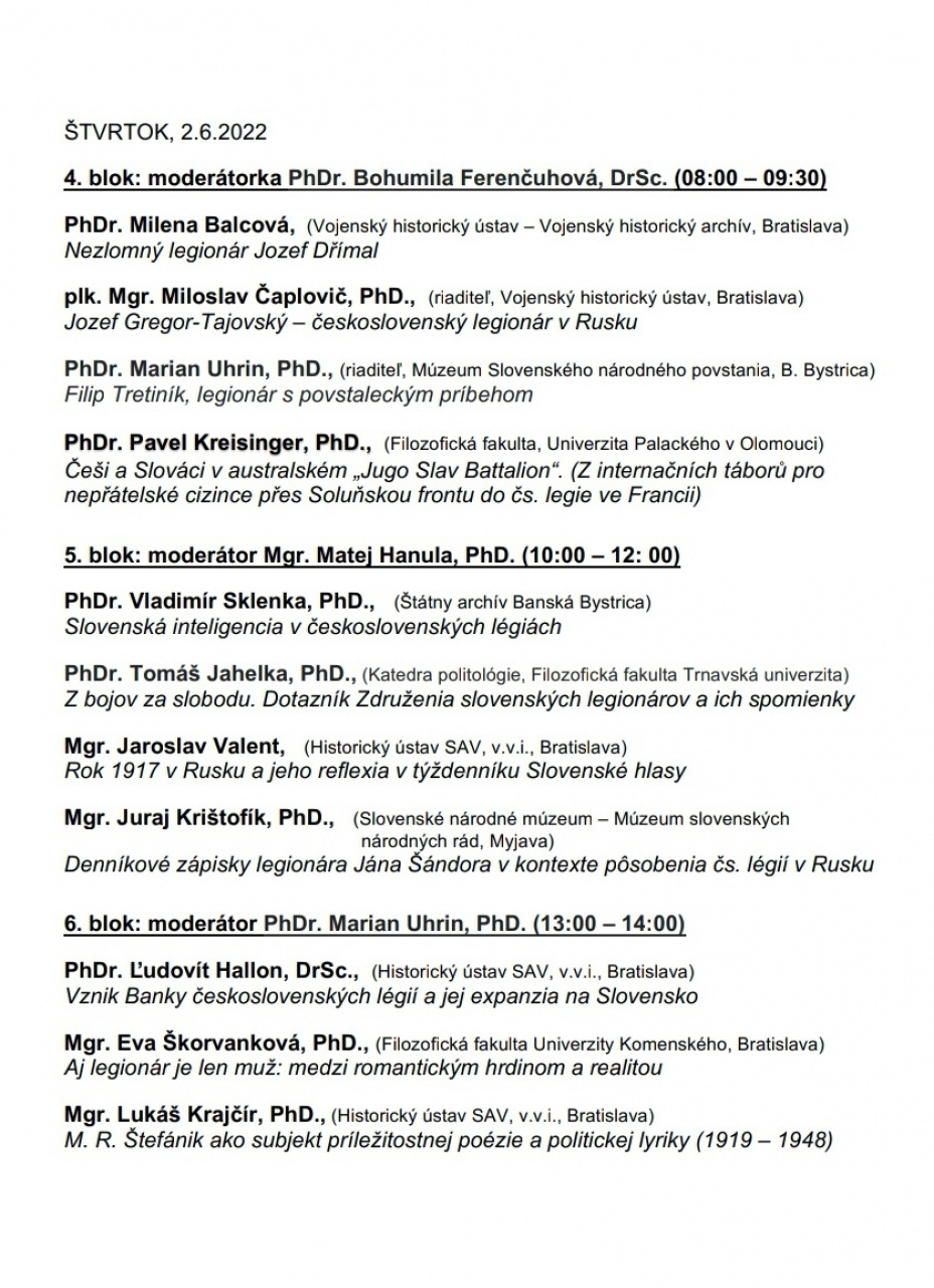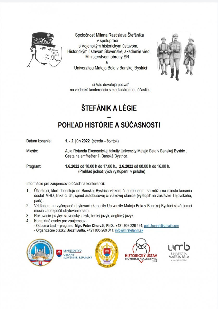 V dňoch 1. - 2. júna 2022 sa bude konať v Banskej Bystrici vedecká konferencia s medzinárodnou účasťou: Štefánik a légie - pohľad histórie a súčasnosti.