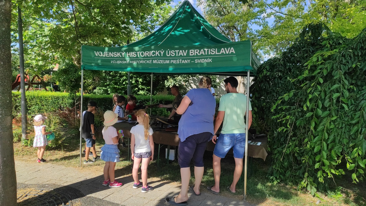 Bohatý celodenný program plný zábavy a hier obohatili aj zamestnanci Vojenského historického ústavu – pracovníci Vojenského historického múzea v Piešťanoch, ktorí pripravili statickú hmatovú prezentáciu 16 kusov zbierkových predmetov – ručných palných zbraní patriacich do fondu Vojenského historického múzea v Piešťanoch. Deti a ich sprievod sa týmto spôsobom mohli detailne oboznámiť nielen s históriou prezentovaných ručných palných zbraní používaných vojakmi niekoľkých armád, ktoré bojovali, resp. boli dislokované na území bývalého Československa, ale aj s bohatou vojenskou minulosťou Slovenska.