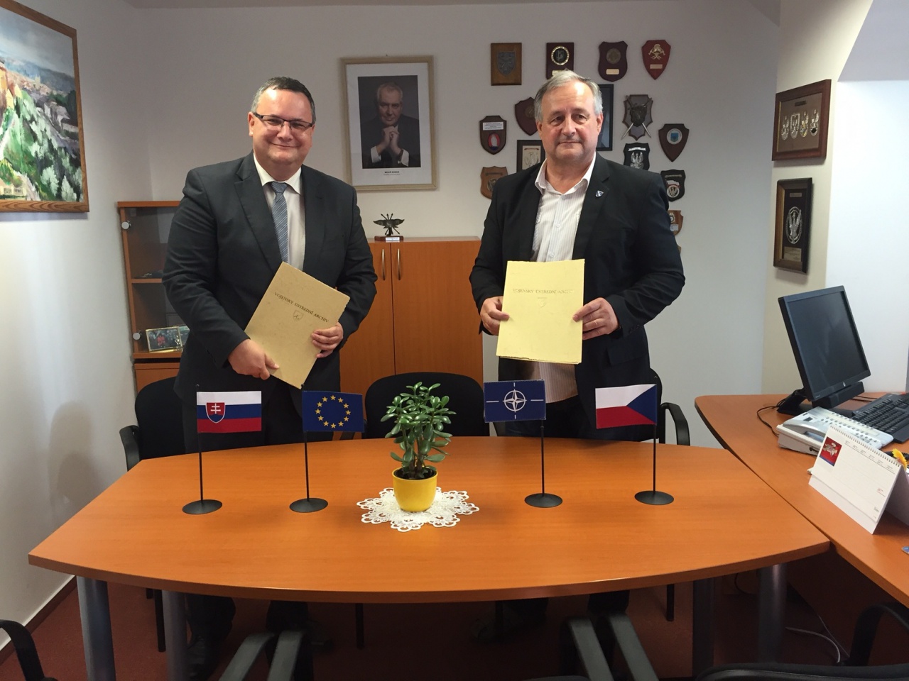 V rámci rozvoja vzájomných bilaterálnych vzťahov zavítala v dňoch 6. až 8. septembra 2016 delegácia Vojenského historického ústavu (ďalej len „VHÚ“) na čele s riaditeľom plk. Mgr. Miloslavom Čaplovičom, PhD. na návštevu do Vojenského ústředního archivu Praha (ďalej len „VÚA“). Mgr. Josef Žikeš, riaditeľ VÚA Praha prezentoval slovenskej delegácii novú archívnu budovu, ukážku jej technického vybavenia, digitalizačné pracovisko, reštaurátorské dielne, archívne sklady a bádateľňu. V rámci bilaterálnych rokovaní si obe delegácie vymenili svoje skúsenosti s digitalizáciou archívnych dokumentov a dohodli pokračovanie spolupráce pri vybavovaní agendy spojenej s odškodňovaním osôb v Českej republike a v Slovenskej republike. Slovenskú delegáciu prijal aj bezpečnostný riaditeľ Ministerstva obrany Českej republiky Ing. Peter Charvát. V rámci sprievodného programu slovenská delegácia navštívila Letecké múzeum VHÚ v Prahe-Kbeloch, novú expozíciu v hangári Aera Praha a výstavu plagátov z obdobia 1. svetovej vojny v Galérii Špejchar v Želeči pri Tábore. Zavŕšením programu pracovnej návštevy bol podpis memoranda medzi predstaviteľmi VÚA Praha a VHÚ Bratislava. Obaja riaditelia vyššie uvedených inštitúcií sa zhodli na užitočnosti vzájomnej spolupráce. Návšteva upevnila nadštandardné vzťahy medzi oboma inštitúciami.