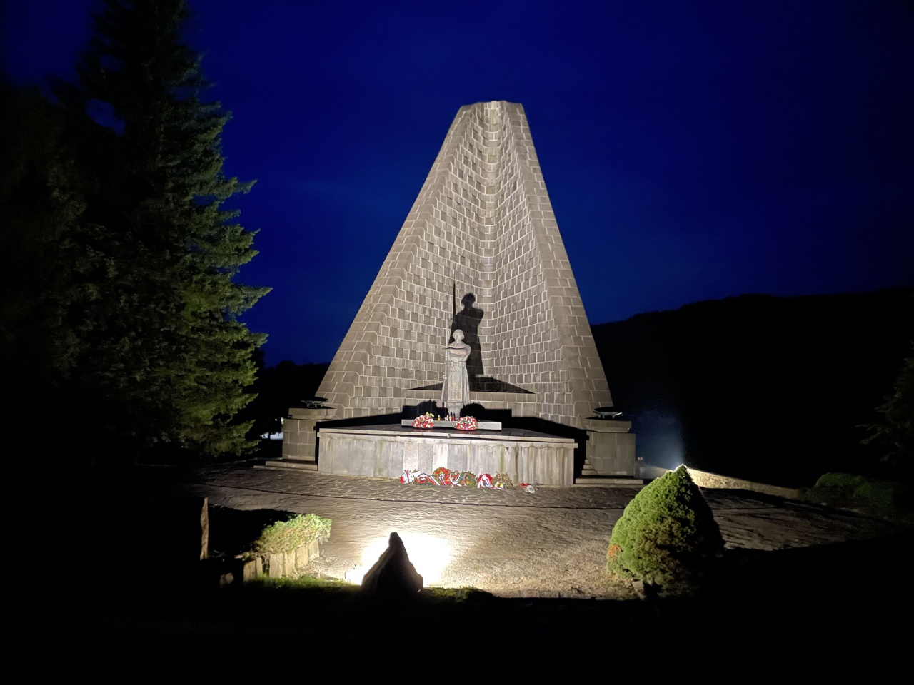 VHÚ, ako správca vyššie uvedených objektov, uvedomujúc si význam tohto monumentálneho pamätného miesta bezprostredne spätého s historickými udalosťami viažucimi sa k samotnému počiatku oslobodzovacích bojov o Slovensko, realizoval v spolupráci s neziskovou organizáciou Dukla Destination a spoločnosťou Jaco security, s. r. o., v priebehu mája a júna 2021 prostredníctvom svojho svidníckeho múzejného pracoviska komplexnú obnovu jeho osvetlenia. Obnova spočívala predovšetkým v odstránení starých zariadení s nefunkčnými a poškodenými svietidlami, a v ich následnom nahradení novými, modernými a štýlovými nízkoenergetickými LED reflektormi napojenými na senzory súmrakového spínača, s tým, že dva reflektory po zotmení osvetľujú samotný pylón pamätníka spolu s časťou jeho predpolia. Tretí reflektor potom osvetľuje v smere od cintorína samotnú vernú umeleckú kópiu pôvodnej sochy československého vojaka vzdávajúceho hold padlým spolubojovníkom, ktorá bola v rámci celkovej komplexnej obnovy tohto pamätného miesta nainštalovaná na piedestál v roku 2014, pri príležitosti osláv 70. výročia Karpatsko-duklianskej operácie. Na tomto mieste treba však jedným dychom dodať, že samotné osvetlenie nebolo, resp. nemohlo byť obnovené v celom pôvodnom rozsahu, ale iba čiastočne, keďže samotný areálu pamätníka a vojnového cintorína sa nachádza na území Chránenej krajinnej oblasti Východné Karpaty, konkrétne Chráneného vtáčieho územia Laborecká vrchovina. VHÚ uvedomujúc si s plnou vážnosťou tú skutočnosť, že neoddeliteľnou súčasťou tohto chráneného územia je pestrá a vzácna flóra a fauna, pre ktorú je, prirodzene, potrebné zachovať čo možno najlepšiu kvalitu životného prostredia (aby svetlo nenarúšalo prirodzené prostredie a biorytmus živočíchov, ktoré sa tam nachádzajú), tak pristúpil po množstve predchádzajúcich konzultácií s odbornými zamestnancami Krajského pamiatkového úradu Prešov a Štátnej ochrany prírody SR – Správy Chránenej krajinnej oblasti Východné Karpaty Medzilaborce k tomuto kompromisnému riešeniu.
