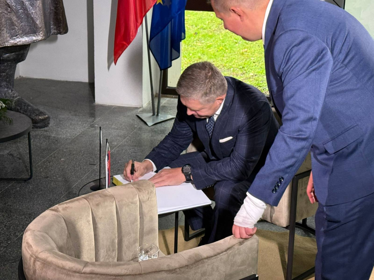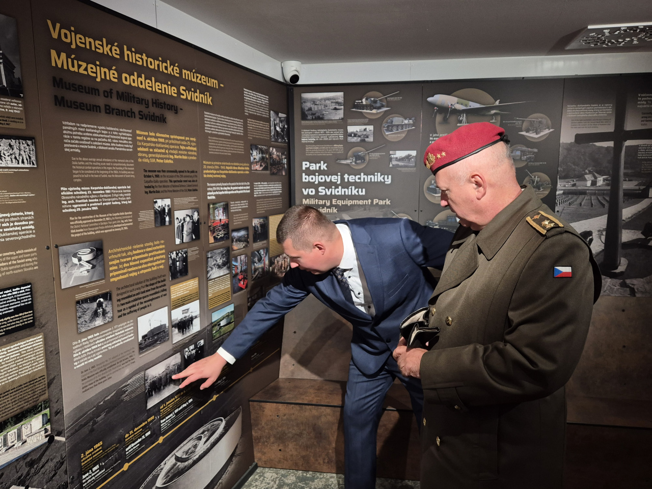 Napokon je potrebné zmieniť, že po ukončení pietneho aktu na Dukle mali jednotliví vzácni hostia možnosť absolvovať tradičnú slávnostnú prehliadku spomínanej vyhliadkovej veže. Tá svojim návštevníkom ponúka predovšetkým panoramatický pohľad na hlavnú časť duklianskeho bojiska v mieste slovensko-poľského pohraničia vrátane samotného Duklianskeho priesmyku. Už od roku 2021 boli v rámci tejto architektonicky zaujímavej stavby začaté rozsiahle rekonštrukčné práce zamerané na jej komplexnú obnovu, ktorých vyvrcholením bolo vytvorenie stálej modernej expozície s názvom „Duklianske bojisko v premenách času“. Všetci tí, ktorí nakoniec aj napriek sychravému počasiu karpatskej jesene prejavili záujem o prehliadku tohto objektu v sprievode riaditeľa VHÚ plk. Miloslava Čaploviča, neskrývali pozitívne dojmy a nešetrili slovami chvály i uznania nad tým, ako sa podarilo v priebehu necelých troch rokov zmeniť vzhľad tejto stavby takmer na nepoznanie a posunúť ju tak na modernú úroveň prislúchajúcu 21. storočiu.