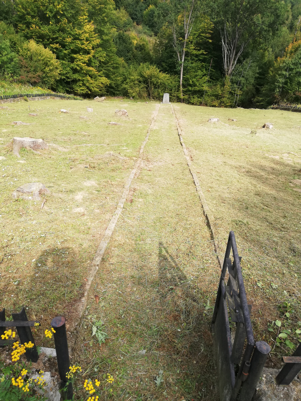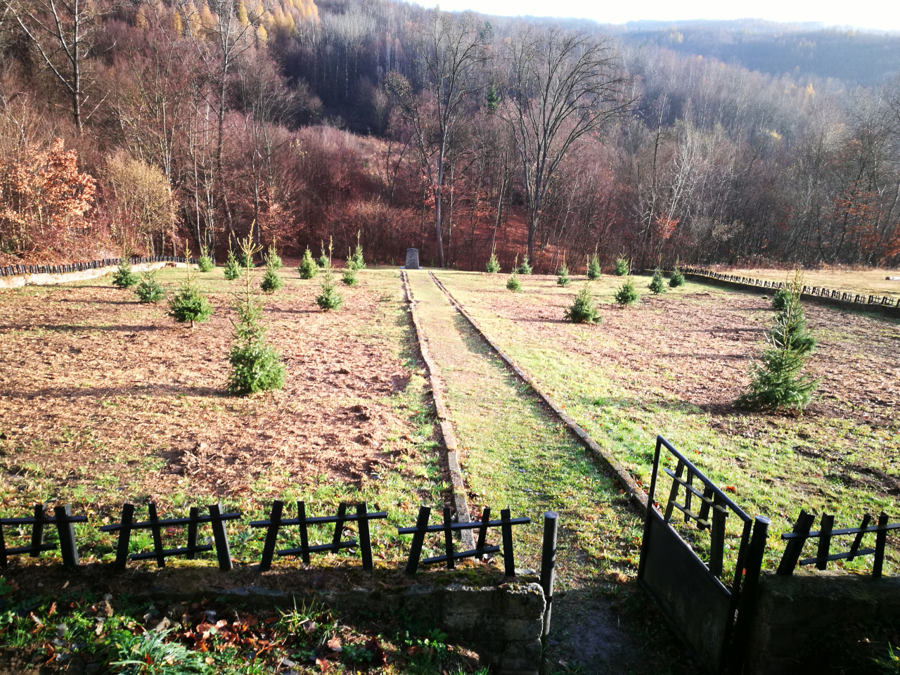 Dominantným prvkom pamätného miesta tragédie je kamenný štvorboký pylón, do ktorého je osadená pamätná tabuľa s nápisom v slovenskom a ukrajinskom jazyku v znení: „Svetlej pamiatke 32 hrdinom – partizánom Tokajíka zastreleným na tomto mieste nemeckými fašistami dňa 19. novembra 1944“. K obelisku bol od prístupovej cesty vybudovaný dlhý chodník a okolo celého komplexu postavený nízky obvodový betónový múr, na ktorom bolo osadené štylizované oplotenie. Dňa 7. marca 1963 bolo toto miesto vyhlásené za národnú kultúrnu pamiatku, ktorá je v Ústrednom zozname pamiatkového fondu v registri nehnuteľných kultúrnych pamiatok zapísaná pod číslom 1286/1 ako Miesto pamätné a pomník.