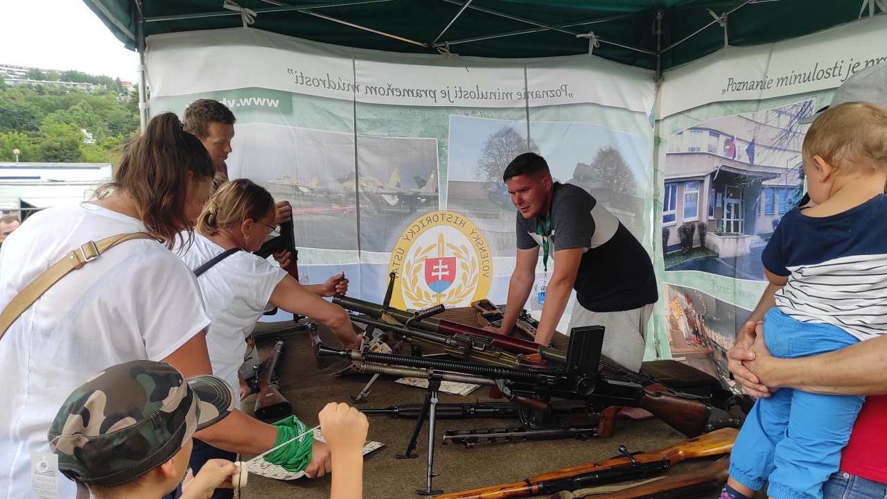 Jeden z nich patril aj Vojenskému historickému ústavu. Naši múzejní pracovníci z Piešťan v ňom pripravili statickú hmatovú prezentáciu šestnástich kusov zbierkových predmetov – ručných palných zbraní patriacich do zbierkového fondu Vojenského historického múzea v Piešťanoch, čím obohatili pestrý program festivalu. Návštevníci nášho prezentačného stanu prostredníctvom tejto formy prezentácie zbierkových predmetov získali nové vedomosti o historických ručných palných zbraniach, čo zároveň vyvolalo ich ďalší záujem o vojenskú minulosť Slovenska. Veľkú pozornosť, najmä medzi staršími účastníkmi festivalu, pútal „samopal“ (automatická útočná puška) vz. 58, pri ktorom si viacerí zaspomínali na ich základnú vojenskú službu. Nefalšovaný záujem návštevníkov, okrem iných zbierkových predmetov, pútala aj predchodkyňa známej nemeckej útočnej pušky Sturmgewehr 44, nemecká útočná puška Maschinenkarabiner 42(H). Pre návštevníkov nášho prezentačného stanu bola skutočnou raritou.