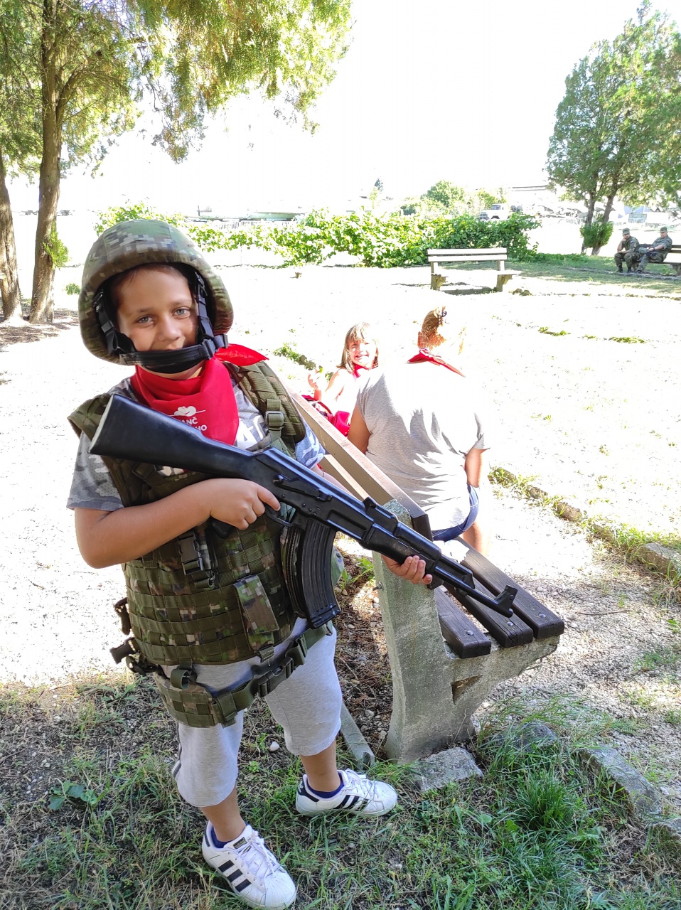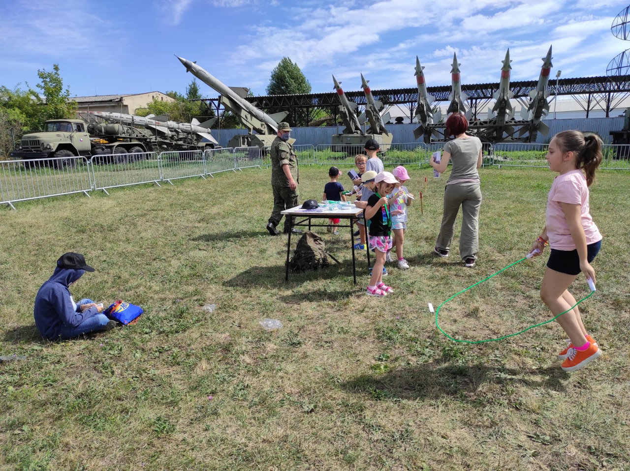 Pohybové aktivity v priestore vonkajšej expozície zabezpečovali príslušníci Ženijného práporu Sereď. Deťom z centier pripravili prekážkovú dráhu, ktorú mohli absolvovať „v plnej poľnej“ s prilbou na hlave a atrapou samopalu v rukách. Na jednotlivých stanoviskách nechýbali hod granátom a maľovanie na tvár.
