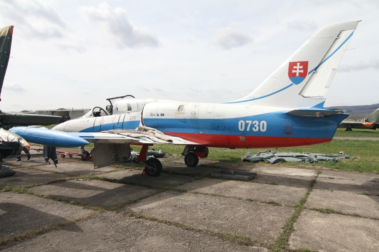 Aero L-39V Albatros s trupovým číslom 0730 bolo vyradené z prevádzky Vzdušných síl OS SR v roku 2010. V tom čase malo vyčerpaný technický život a jeho ďalšia prevádzka by bola podmienená vykonaním generálnej opravy a modernizáciou podľa noriem ICAO, IFF. V dobe vyradenia z prevádzky bolo lietadlo kompletné, nepoškodené a v zachovalom stave. Podľa zmluvy o bezodplatnom prevode bolo prevzaté VHM VHÚ ako celok v súlade s prevádzkovou dokumentáciou. Niektoré prístroje a agregáty boli pred prevozom zo Sliača do Piešťan demontované a spätne zabudované až počas finálnej montáže. Pred prevozom bolo z lietadla odsaté letecké palivo, demontované všetky pyropatróny (na núdzové odstránenie krytu kabíny), signálne náboje a raketové motory vystreľovacieho sedadla. Prevoz bol realizovaný pozemnou cestou pomocou nákladných automobilov s podvalovým návesom. Počas prevozu museli byť kvôli nadrozmernosti a špecifickému tvaru prevážaného nákladu demontované krídla. Po prevoze bolo vlečné prúdové lietadlo Aero L-39V Albatros zaradené v roku 2011 do zbierok múzea a umiestnené do vonkajšej časti stálej expozície VHM v Piešťanoch. V priebehu 34 rokov prevádzky vykonalo lietadlo celkom 2 707 štartov a nalietalo 1 727 letových hodín a 15 minút vo vojenských útvaroch VÚ 4562 Kuchyňa, VÚ 9957 Košice, VÚ 5845 Košice a VÚ 4977 Sliač.