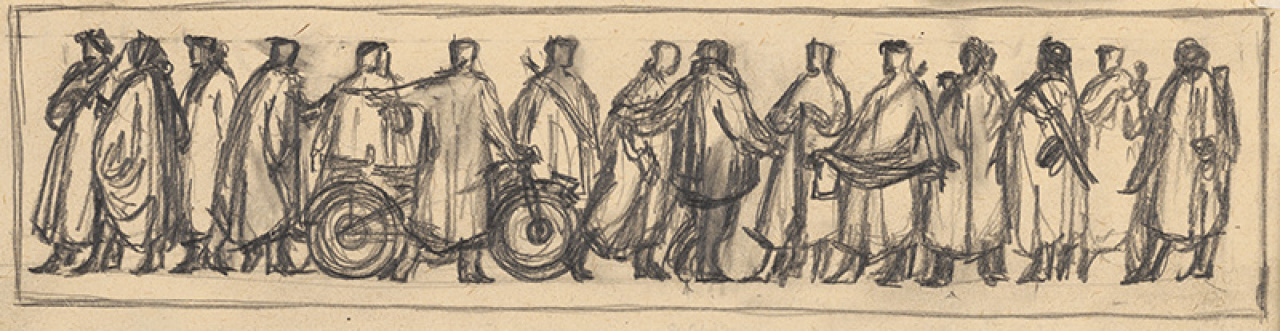 Stredoslovenská galéria, K 1146 Prípravná kresba k súťažnému návrhu na reliéf pre pomník SNP v Bratislave,