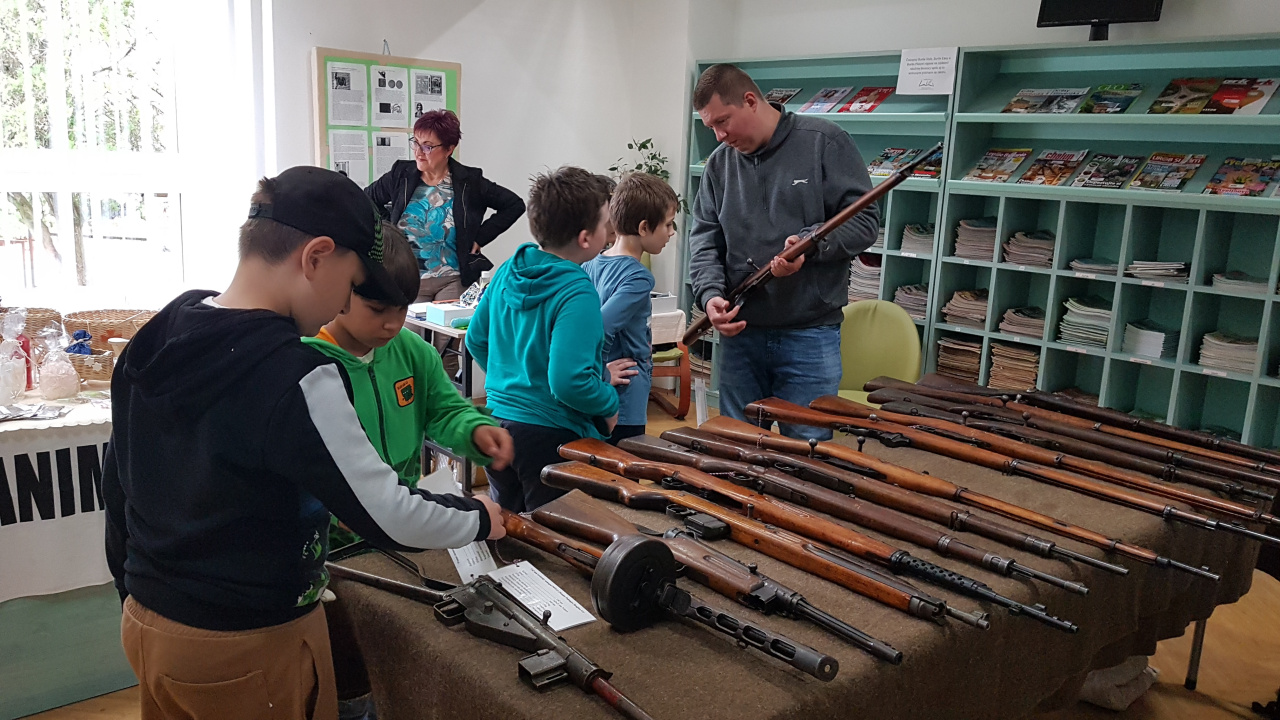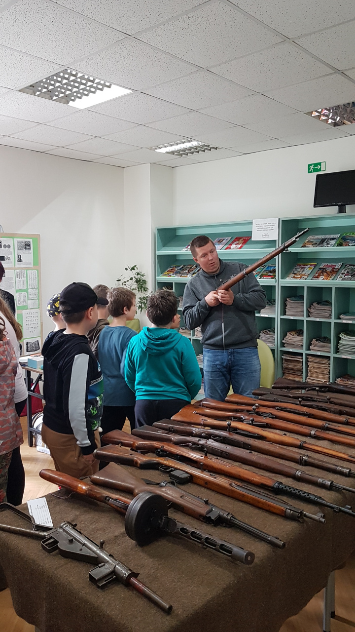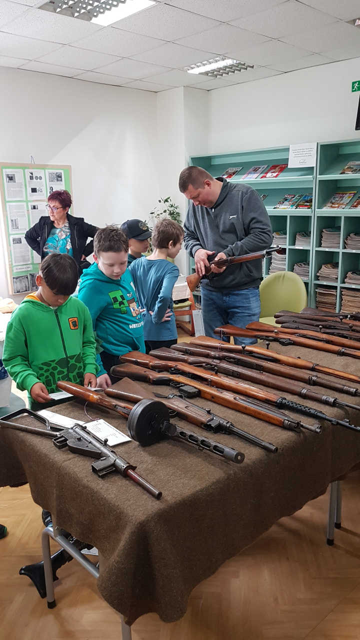 „Bokom“ nezostali stáť ani naši múzejníci zo Svidníka, ktorí pripravili zaujímavú statickú ukážku múzejných predmetov zo zbierkového fondu VHÚ – Mo Svidník VHM. Počas ukážky informovali záujemcov o vývoji prezentovaných zbraní, ich zavedení do výroby a využití v jednotlivých armádach. Najväčšiu pozornosť tých najmenších návštevníkov knižnice pritom už tradične pútali najmä sovietsky samopal PPŠ-41 a nemecký univerzálny guľomet MG-42. Bokom neostali ani československý ľahký guľomet ZB vzor 26, či viaceré opakovacie pušky z obdobia prvej a druhej svetovej vojny. Veľkú pozornosť detí si však vyslúžili aj jednoranové a zároveň aj najstaršie prezentované pušky, konkrétne rakúsko-uhorská puška Werndl M1867 vyrobená pred 154 rokmi a ruská puška Berdan II model 1870, ktorá uzrela svetlo sveta v roku 1884. Starší návštevníci si mohli vypočuť aj prednášku o vzniku, priebehu i význame Slovenského národného povstania a o jeho nezastupiteľnom mieste v našich národných dejinách, ktorú pripravili a odprezentovali naši kolegovia zo svidníckeho múzejného pracoviska.