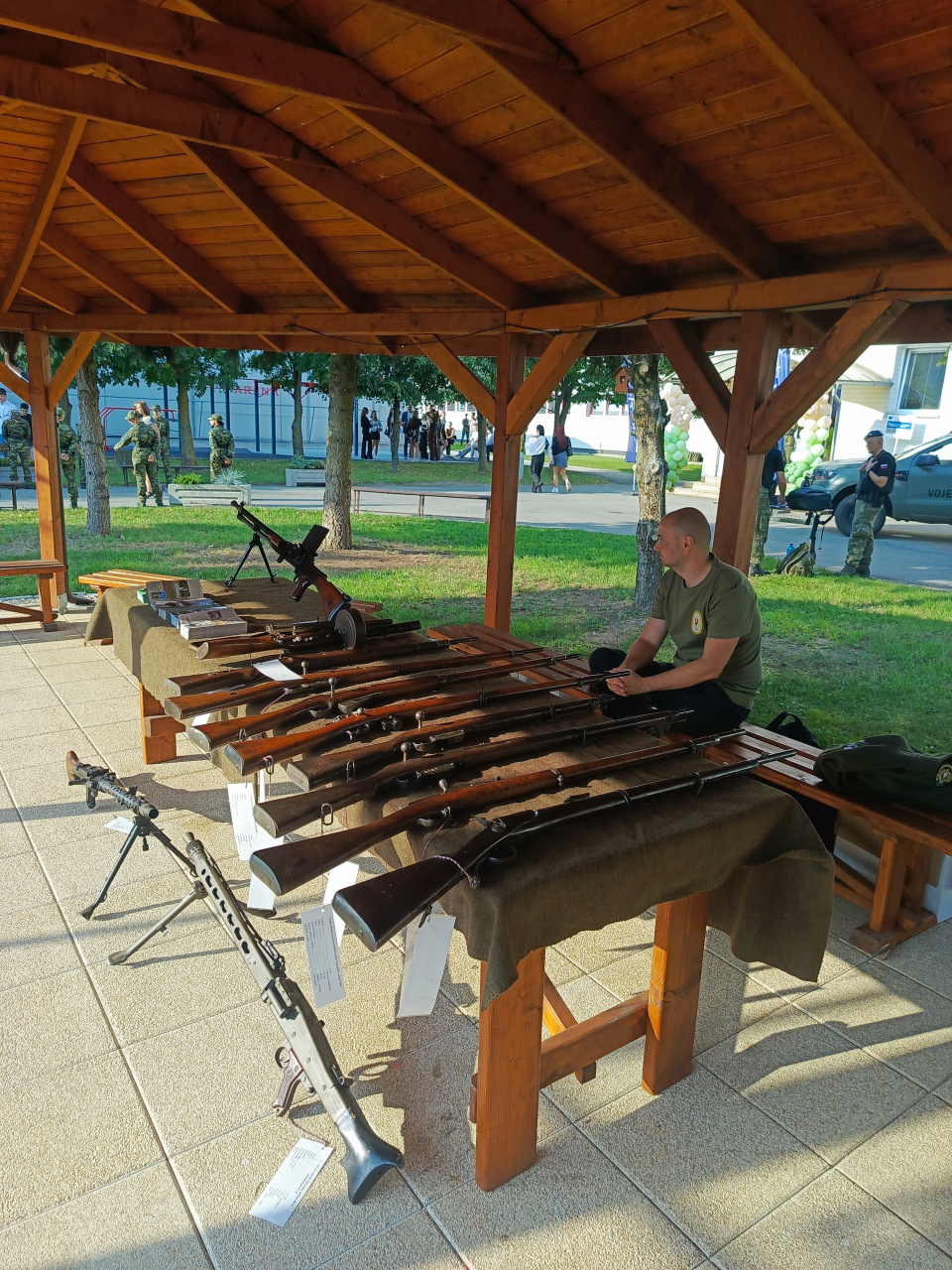 z 51. krídla Prešov bol pre všetkých prítomných vo vonkajšom areáli školy pripravený bohatý sprievodný program. V jeho dynamickej časti sa so svojim showprogramom predstavila Čestná stráž OS SR, ďalej ukážkami sebaobrany i boja zblízka zaujali príslušníci 65. prieskumného práporu Prešov. Pútavú ukážku parašutistického výsadku zameranú na pevnosť pristátia si pripravili členovia Vojenského športového centra Dukla Banská Bystrica. Pripravenosť na plnenie náročných služobných úloh preukázali aj príslušníci Vojenskej polície z Oddelenia policajného výkonu Michalovce, vojaci 52. výsadkového práporu z Jamníka a 103. práporu Radiačnej, chemickej a biologickej ochrany z Rožňavy. K zatraktívneniu celého tohto podujatia prispeli aktívnou účasťou aj vojenskí múzejníci – odborní pracovníci Vojenského historického ústavu – Múzejného oddelenia Svidník Vojenského historického múzea (VHÚ – Mo Svidník VHM), ktorí prítomným ponúkli statickú ukážku múzejných zbierkových predmetov zo zbierkového fondu VHÚ – Mo Svidník VHM. Záujemcov súčasne informovali o vývoji prezentovaných zbraní, ich zavedení do výroby a využití v jednotlivých bojujúcich armádach. Najväčšiu pozornosť už tradične pútal najmä sovietsky samopal PPŠ-41, nemecké univerzálne guľomety MG-34 a MG-42, no v pozadí neostali ani československý ľahký guľomet ZB vzor 26 spolu s opakovacími puškami pochádzajúcimi z obdobia prvej i druhej svetovej vojny.