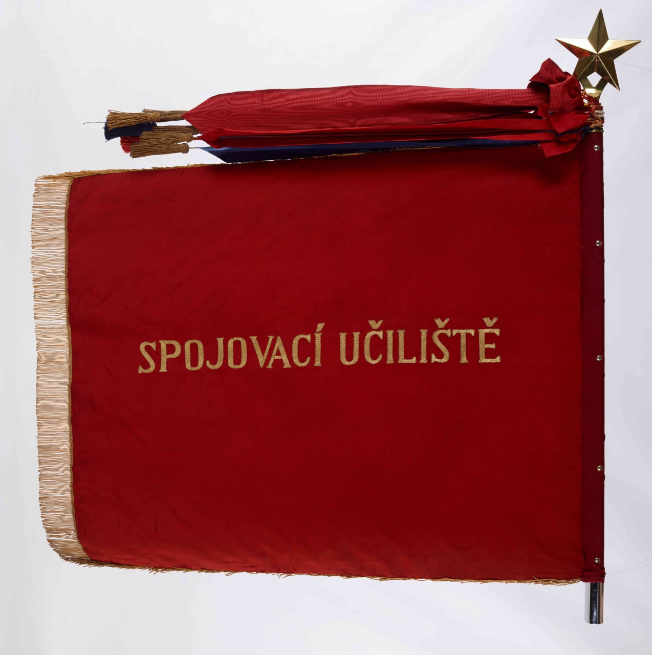 Bojová zástava Spojovacieho učilišťa bola do zbierkového fondu Vojenského historického múzea Piešťany zaradená v roku 1996, vtedy sa stala súčasťou zbierky č. XVI – Bojové zástavy, štandardy, vlajky. Vojenský historický ústav Bratislava ju prevzal v roku 1995 od Novomestského rádioreléového strediska Podjavorinských partizánov v Novom Meste nad Váhom.