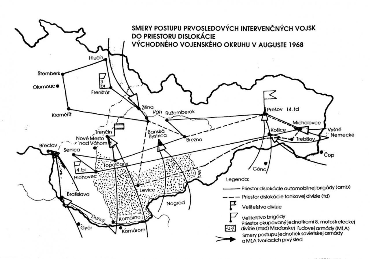 Vojenskú intervenciu do ČSSR vykonali armádne skupiny A, B, C.