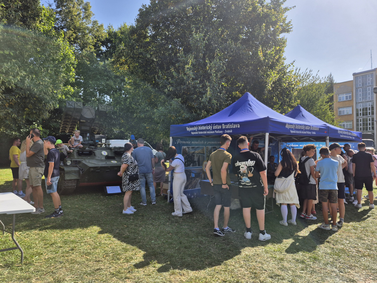 VHÚ prispel k programu viacerými už spomenutými aktivitami. Okrem stanu SNP, na realizácii ktorého sa podieľali aj vojenskí historici z VHÚ, najmä prostredníctvom prezentačných stanov VHM Piešťany a VHM Svidník. Vojenskí múzejníci predstavili návštevníkom podujatia ukážky ručných palných zbraní zo zbierok oboch oddelení VHM, a tak im priblížili vývoj výzbroje našich vojakov počas prvej a druhej svetovej vojny. Súčasťou prezentácie boli aj tri veľkorozmerné zbierkové predmety – raketomet vz. 51, strela 10M na podvozku MTLB a 30 mm protilietadlový dvojkanón vz. 53/59 (Jašterka), ktoré rovnako vzbudili veľký záujem. Ich prepravu zabezpečovali príslušníci z 53. práporu poľných služieb Hlohovec.