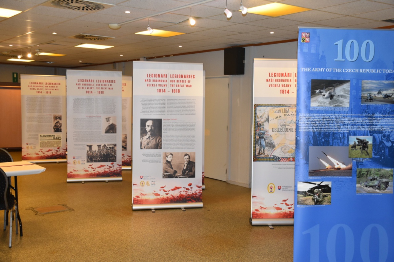 Národní predstavitelia Slovenskej republiky a Českej republiky pri Najvyššom veliteľstve spojeneckých síl v Európe (SHAPE) v belgickom Mons dňa 14. novembra 2018 zorganizovali pri príležitosti 100. výročia vzniku spoločného štátu Slovákov a Čechov slávnostnú recepciu. Okrem príslušníkov oboch bratských armád sa na nej zúčastnili pozvaní hostia – príslušníci veliteľstiev spojeneckých síl NATO v Európe. V príjemnej sviatočnej atmosfére si účastníci recepcie so záujmom prezreli panelovú výstavu „Legionári – naši hrdinovia Veľkej vojny 1914 – 1918“, ktorej autorom je riaditeľ Vojenského historického ústavu plk. Mgr. Miloslav Čaplovič, PhD. Výstava tvorená štrnástimi panelmi s textami v slovenskom jazyku a anglickom jazyku návštevníkom priblížila významnú časť vojenskej minulosti Slovenska. Slávnu históriu československých légií, ktorú tvorili naši predkovia na bojiskách prvej svetovej vojny, približuje od vzniku našich prvých vojenských jednotiek na území cárskeho Ruska a Francúzska v roku 1914, až po návrat posledných československých legionárov do Československa v roku 1920.