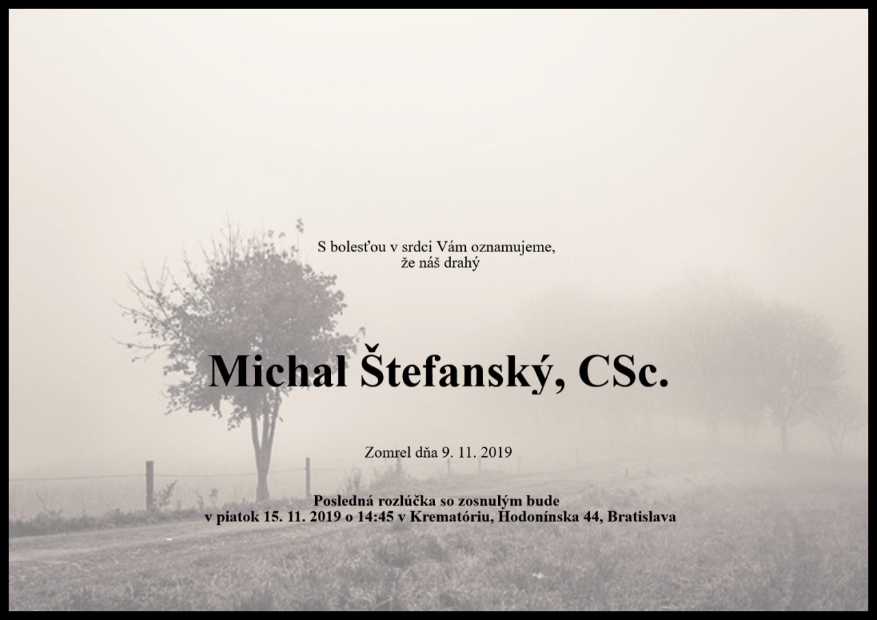 Dňa 9. novembra 2019 sa definitívne skončila životná púť Michala Štefanského, CSc., nášho vzácneho priateľa a kolegu.